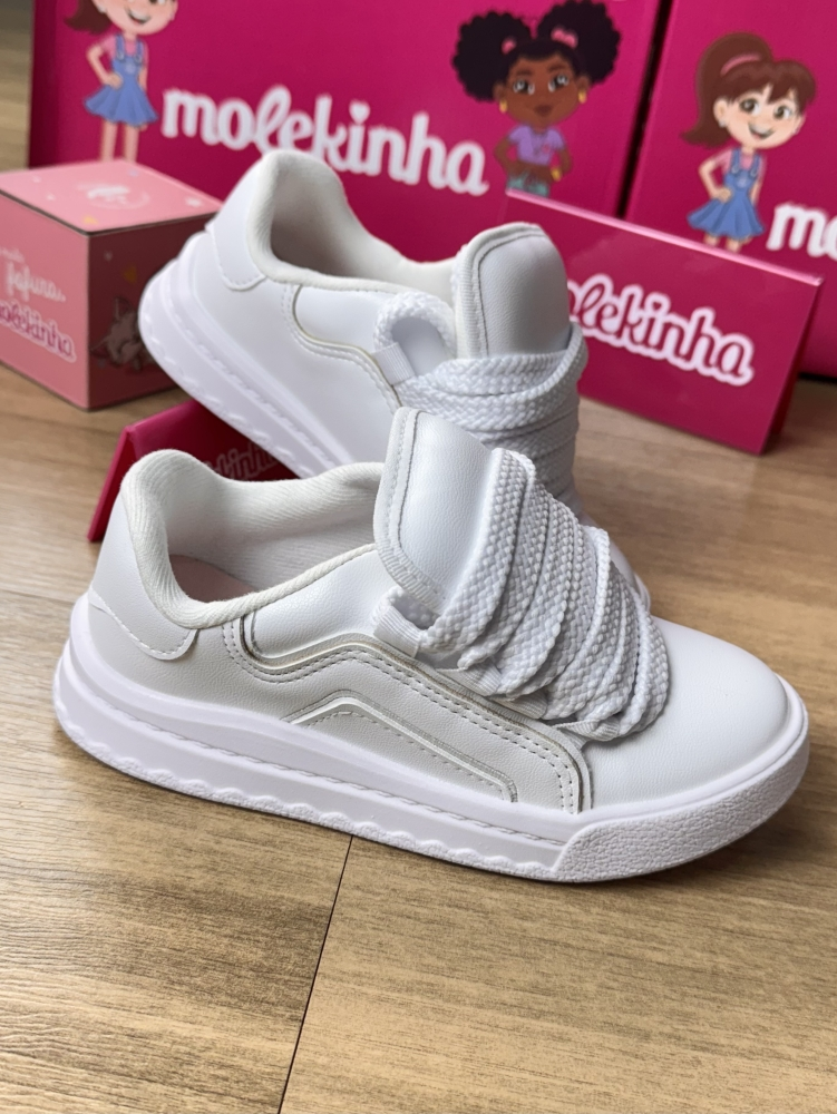 O Power Style da Molekinha traz o detalhe do cadarço largo que é tendência e o conforto que as meninas amam.