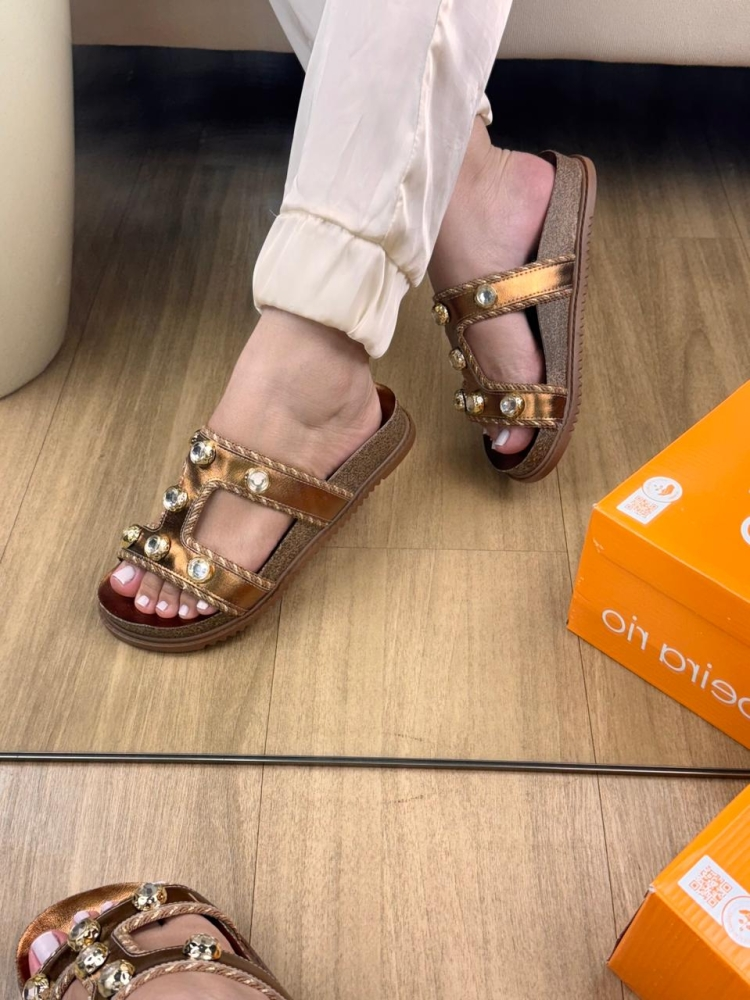 A Papete Lux da beira Rio é confortável, moderna e com pedrarias que dão um toque de sofisticação ao seu look.
