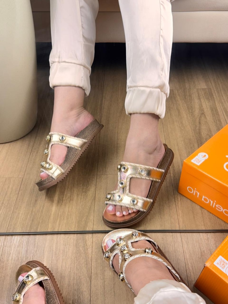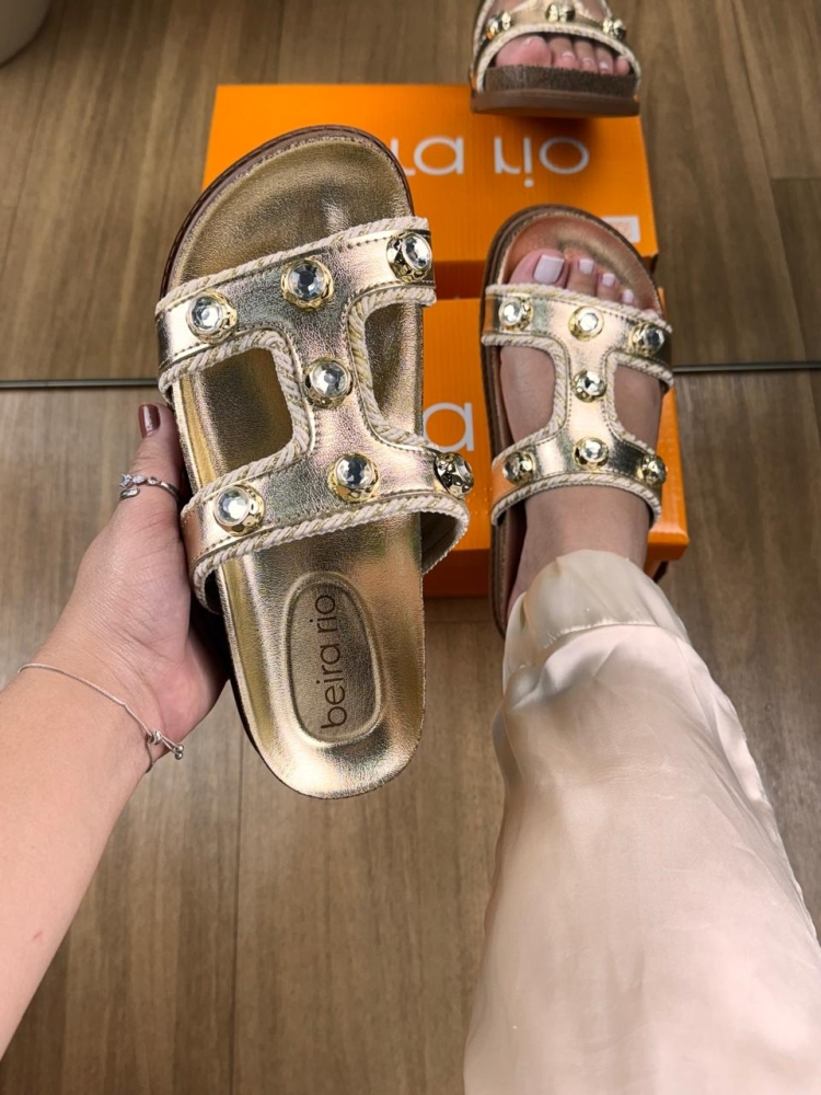 A Papete Lux da beira Rio é confortável, moderna e com pedrarias que dão um toque de sofisticação ao seu look.
