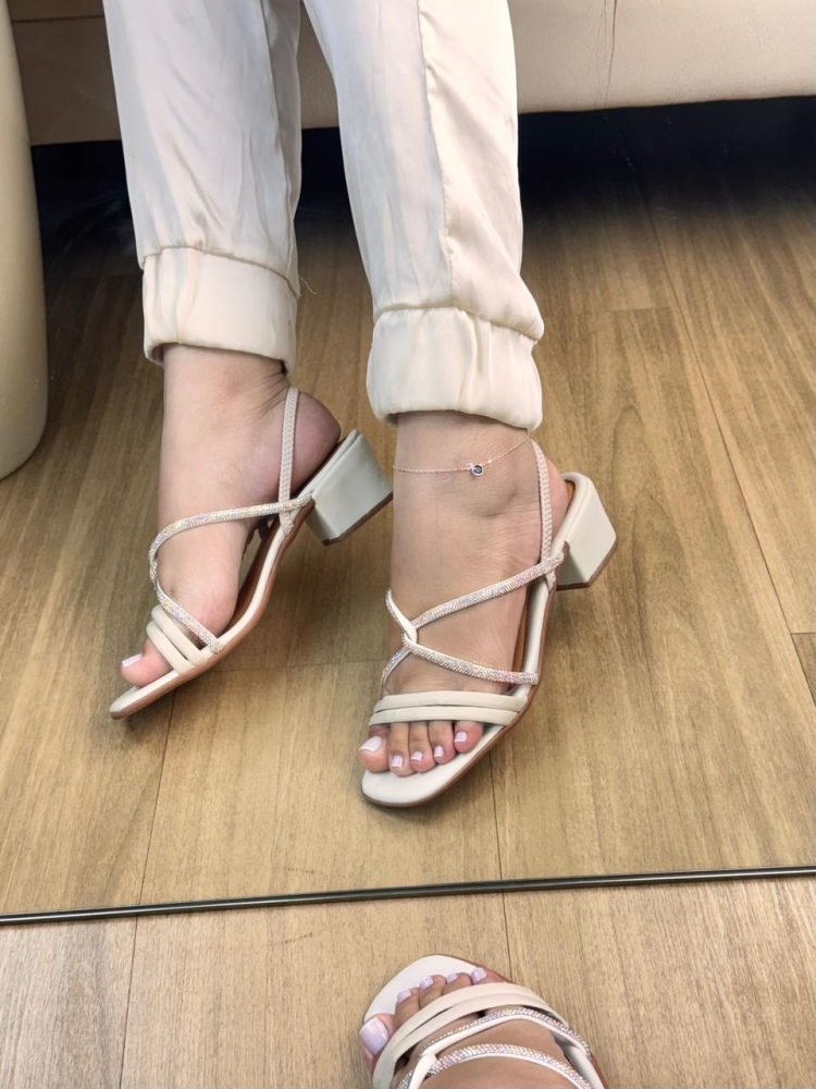 Com um design moderno e tiras finas que valorizam o pé, ele traz um toque de brilho sutil e elegante.