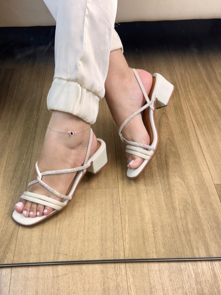 Salto Bloco Strass Branco - Aurora