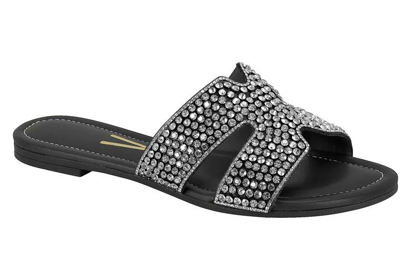 Rasteira Glam Diamond Preta - Vizzano
